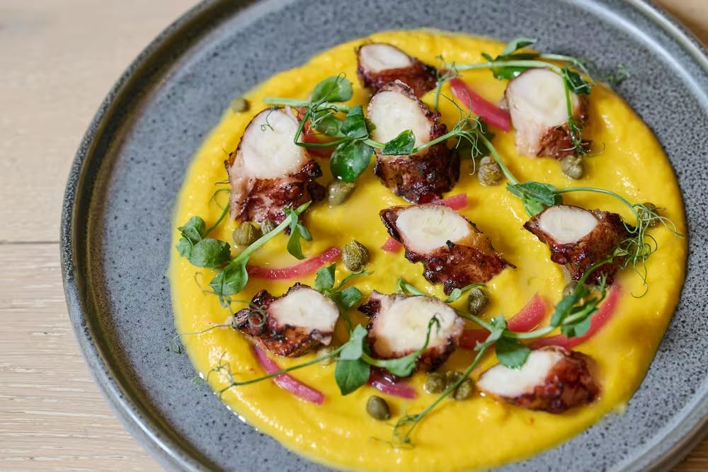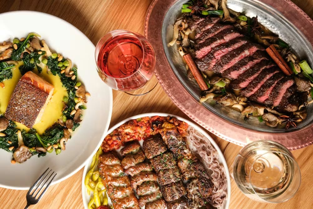 We always begin with the spreads. Think cool labneh and creamy hummus, paired with pita so warm it’s still steaming. It’s the ultimate way to open the palate.