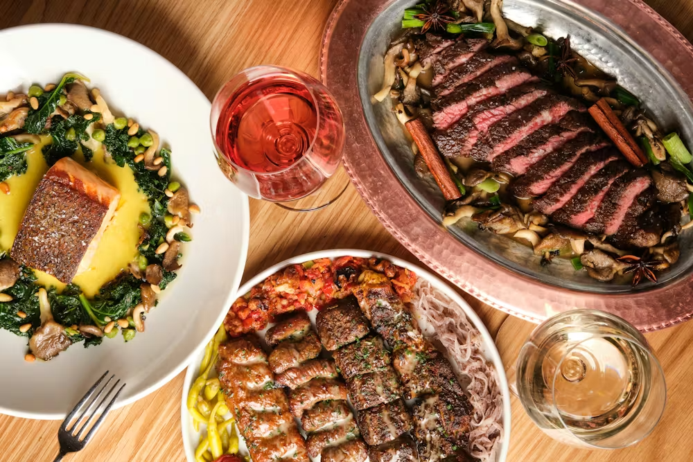 Now, the table is truly abundant. This is the moment for our larger plates, like the Seared Salmon or the robust Steak Mishwi, made to be passed around and enjoyed by everyone.
